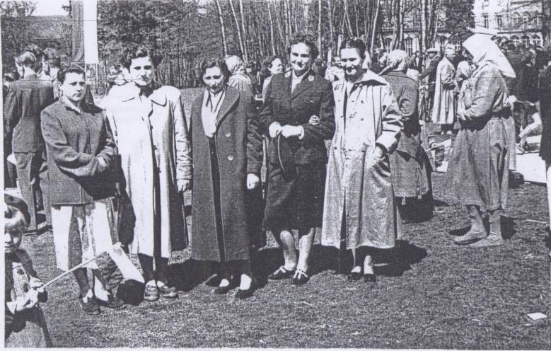 Mysłakowice 1956 rok. Uroczystości przed szkolą.